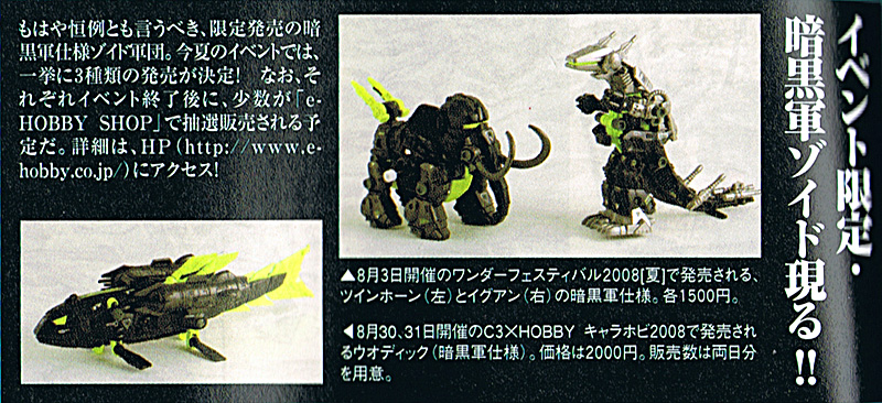 ワンダーフェスティバル2008夏とキャラホビ2008年で発売される暗黒軍仕様のゾイドの詳細が出た模様